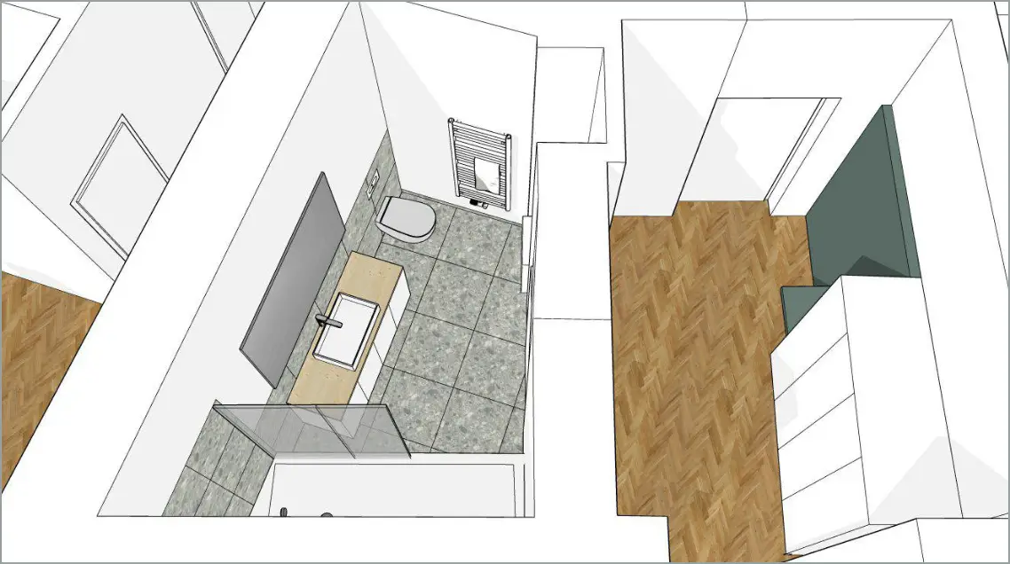 Greatest comfort on 61 square meters promises this modern apartment in the center of the city. A modern eat-in kitchen forms the heart of this apartment. Directly next to it is the separate bedroom with walk-in closet space. Via the anteroom you reach the bathroom with bathtub and the toilet. An elegant herringbone parquet floor adorns the entire living area.