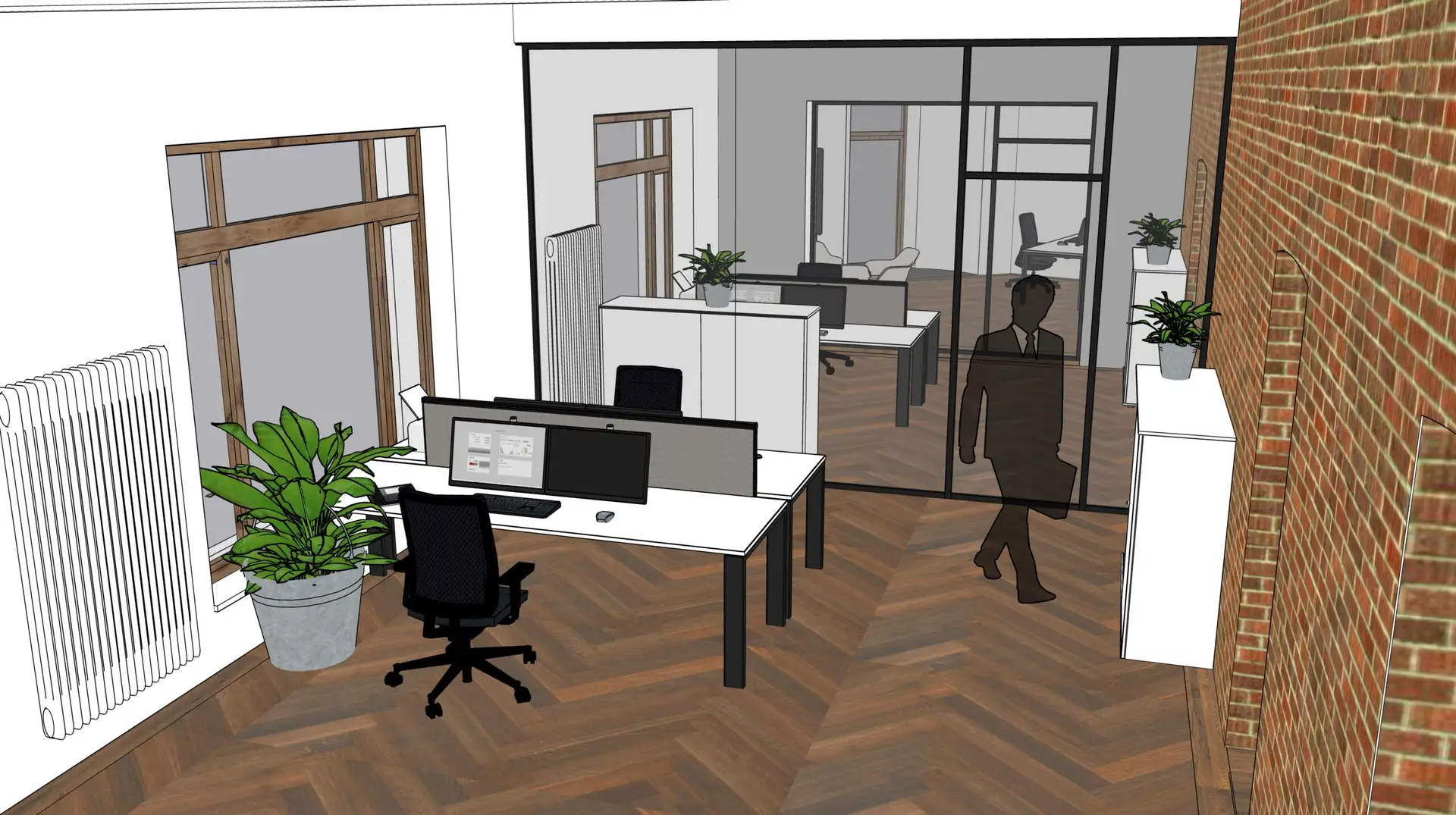 Double office with glass wall